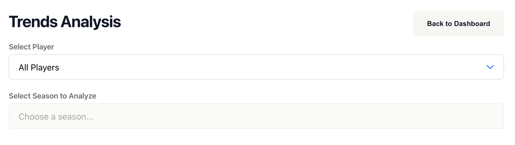 Use the player dropdown at the top of the page to switch between different players. When you change players, you'll need to select a season for that player.